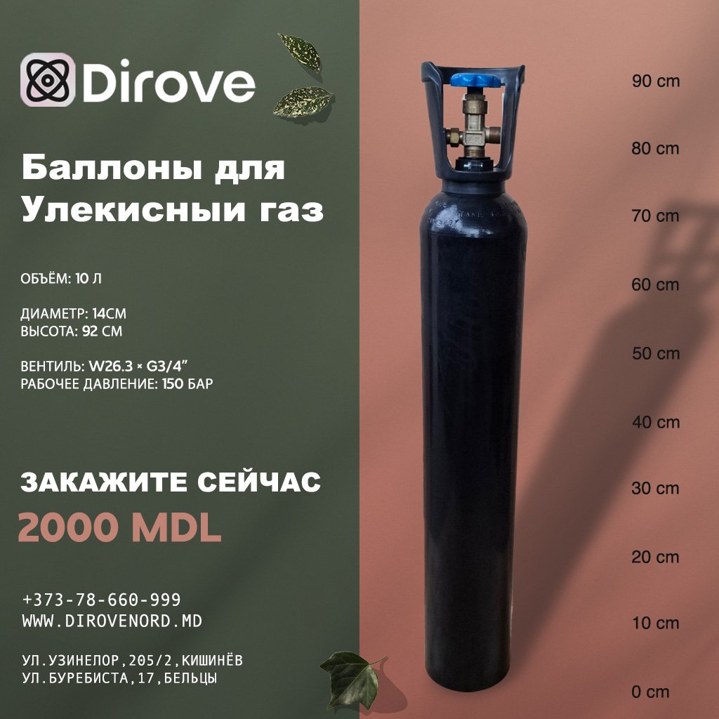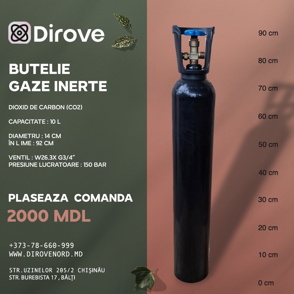 Butelie din otel pentru CO2 Dioxid de carbon 10L/150bari avand robinet prevazut cu disc de rupere.